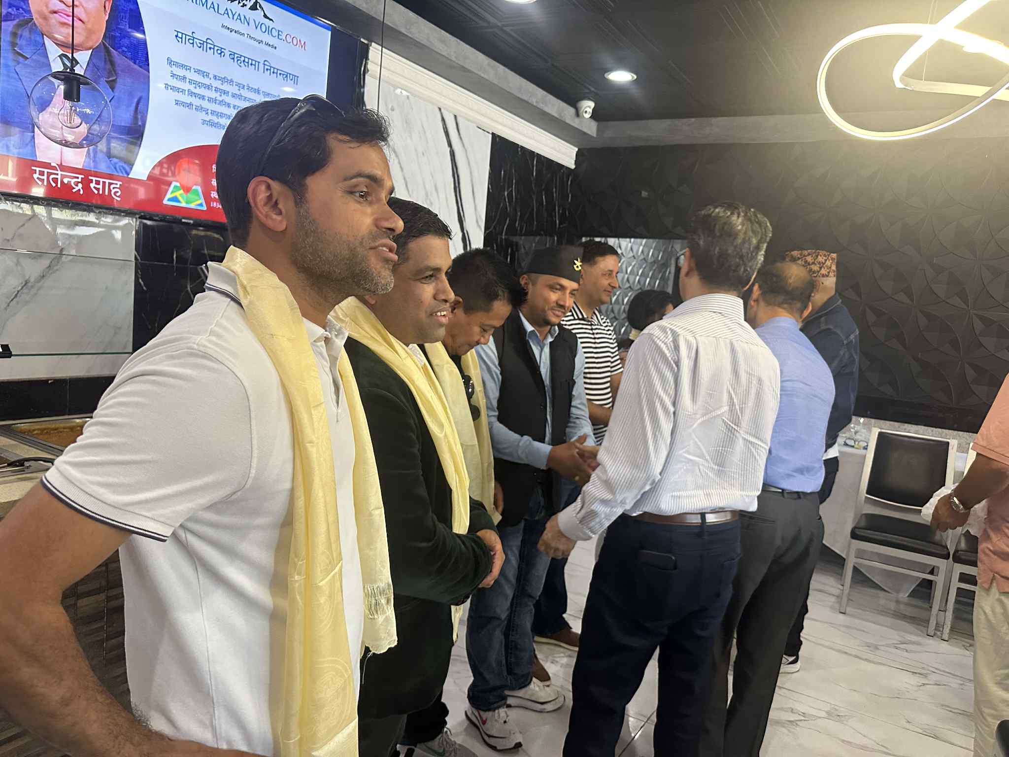 अवैतनिक वाणिज्य दुत ऋषि ढकाल, पशुपतिनाथ बुद्ध मन्दिरका अध्यक्ष बिमल श्रेष्ठ, नेपाली जनसम्पर्क समिति दक्षिण क्यालिफोर्नियाका सभापति मदन पाठकले टिम सतेन्द्रलाई खादा लगाएर अग्रिम विजयको शुभकामना दिएका थिए ।