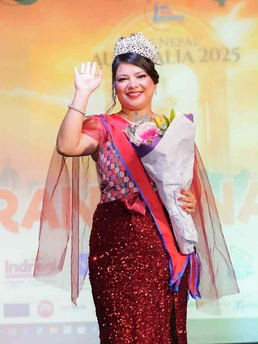 मेलबर्न । मिसेस नेपाल अस्ट्रेलिया २०२५ को पहिलो संस्करणमा ब्युटी विथ ब्रेनकि पर्याय लिला तिवारी पौडेलले मिसेस नेपाल अष्ट्रेलिया २०२५ को ताज चुमेकी छिन् । २०२५ सेप्टेम्बर १३ मा अस्ट्रेलियाको मेलबर्नमामा आयोजित प्रतियोगितको भव्य फाइनल समारोहमा लिलाले “एलीगेन्ट वाक” उपाधि, १,००० अस्ट्रेलियन डलरको नगद पुरस्कार समेत प्राप्त गरेकी छिन ।