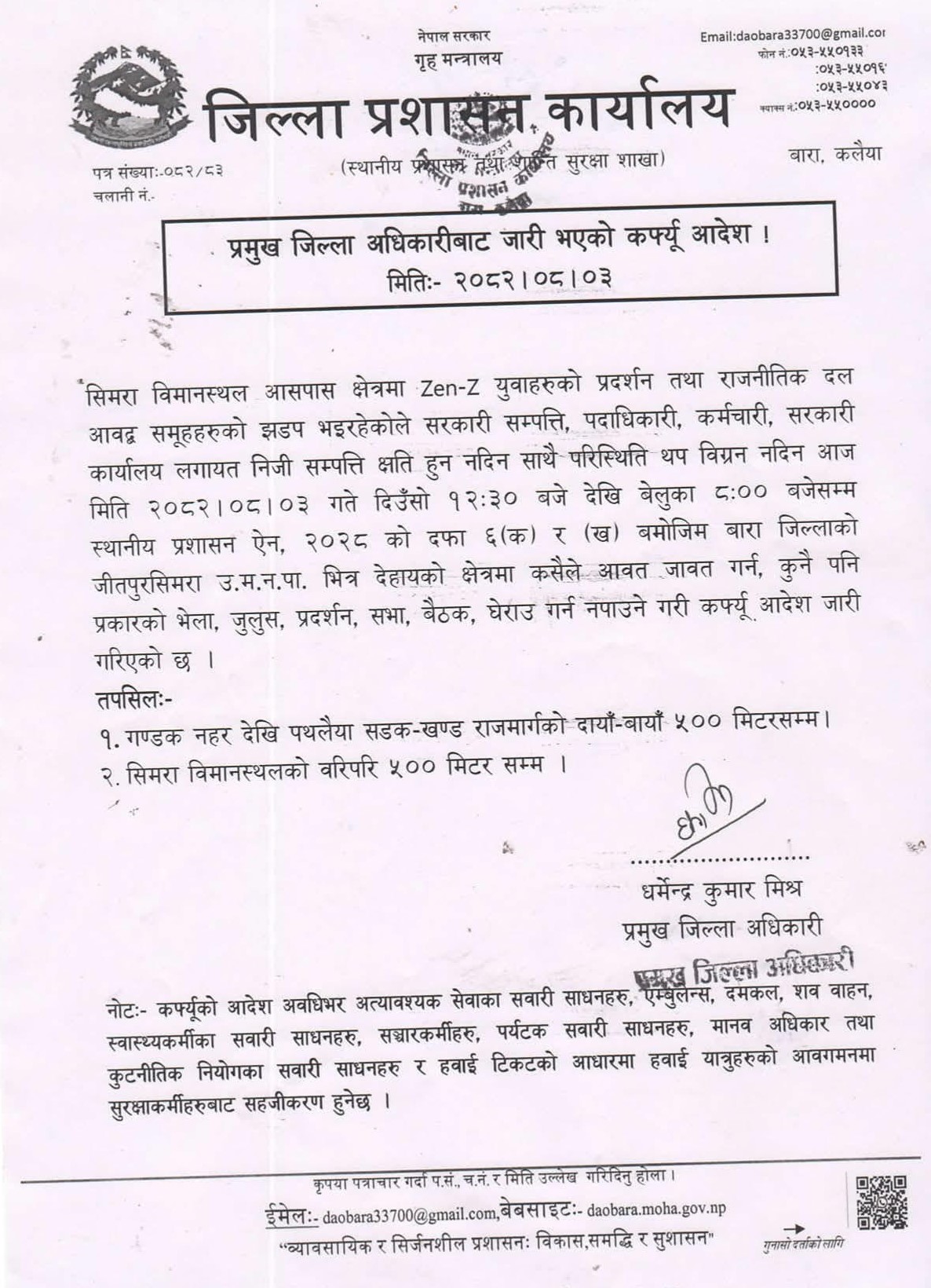 बारा । नेकपा एमालेका कार्यकर्ता र जेनजी युवाबीचको झडपले बाराको..