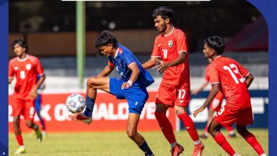 काठमाडौँ । नेपाल माल्दिभ्समा जारी यु–२० साफ च्याम्पियनसिप फुटबलको..