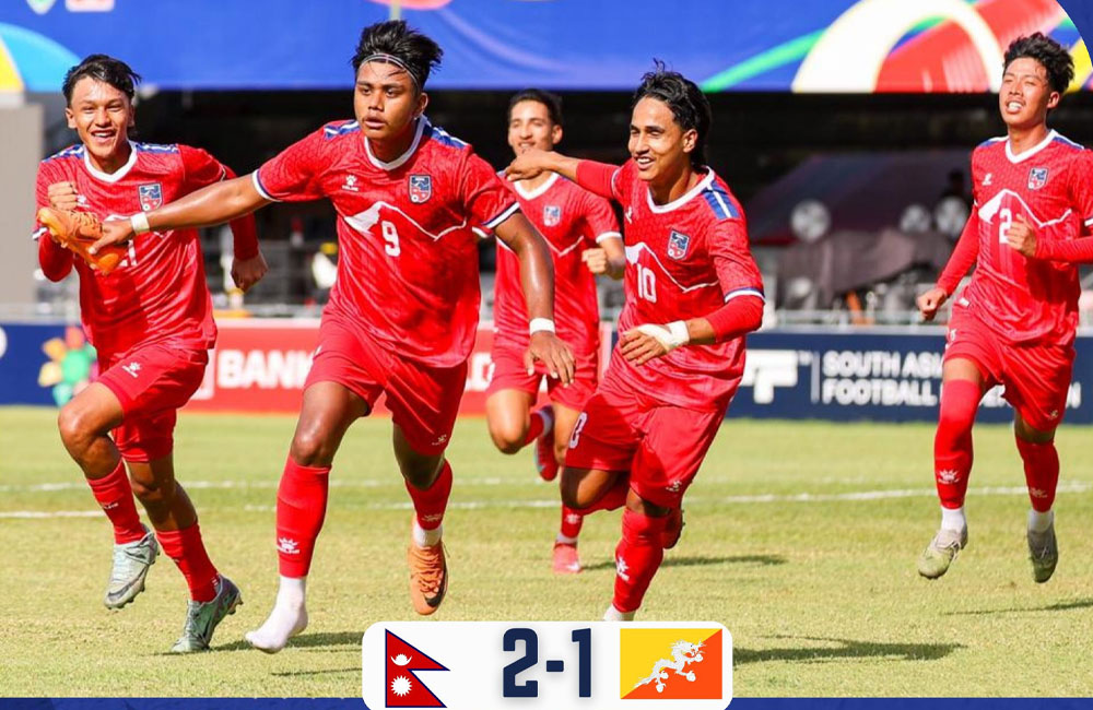काठमाडौँ । साफ यु–२० फुटबल प्रतियोगितामा नेपाल समूह विजेताका रूपमा..